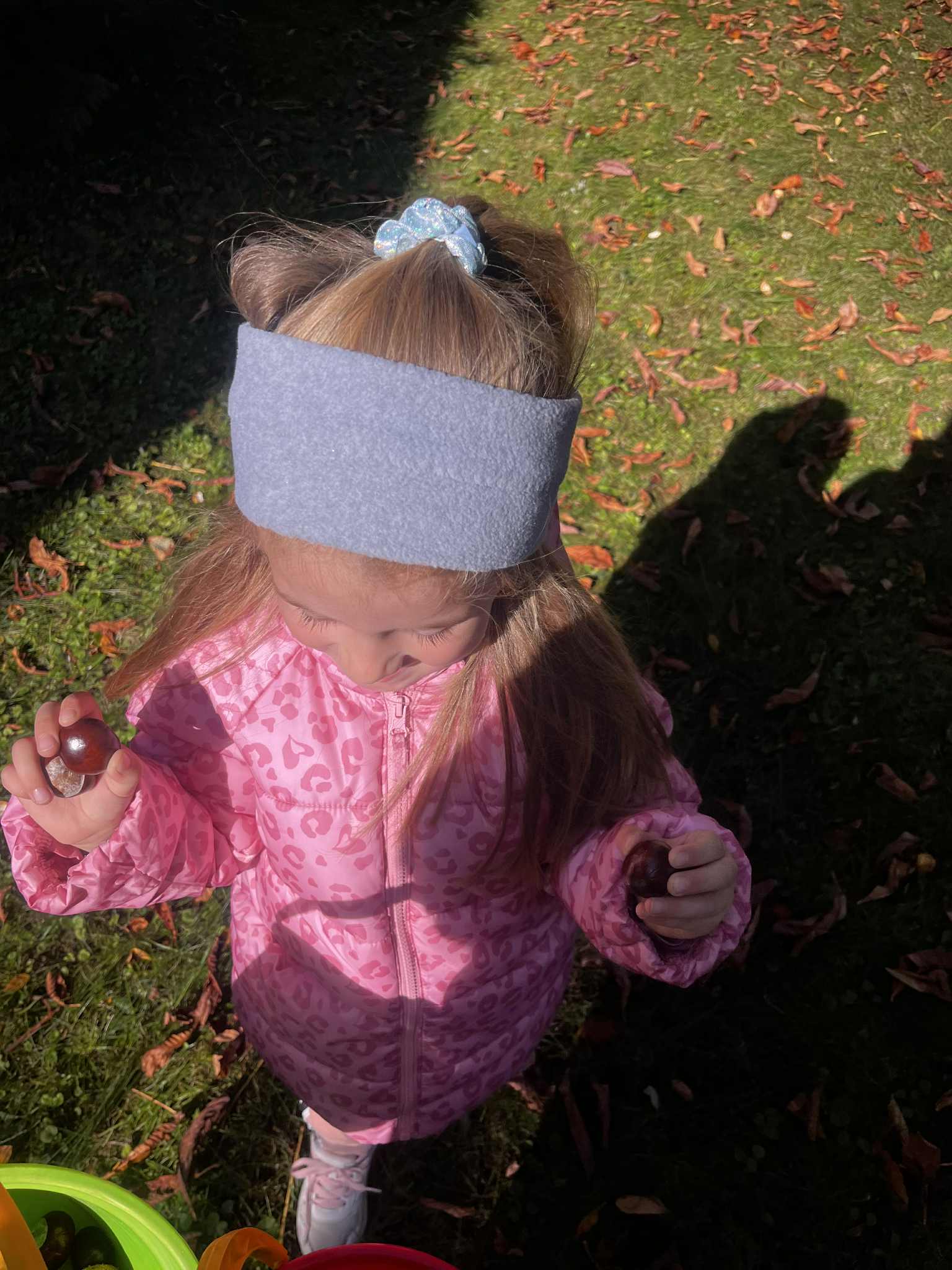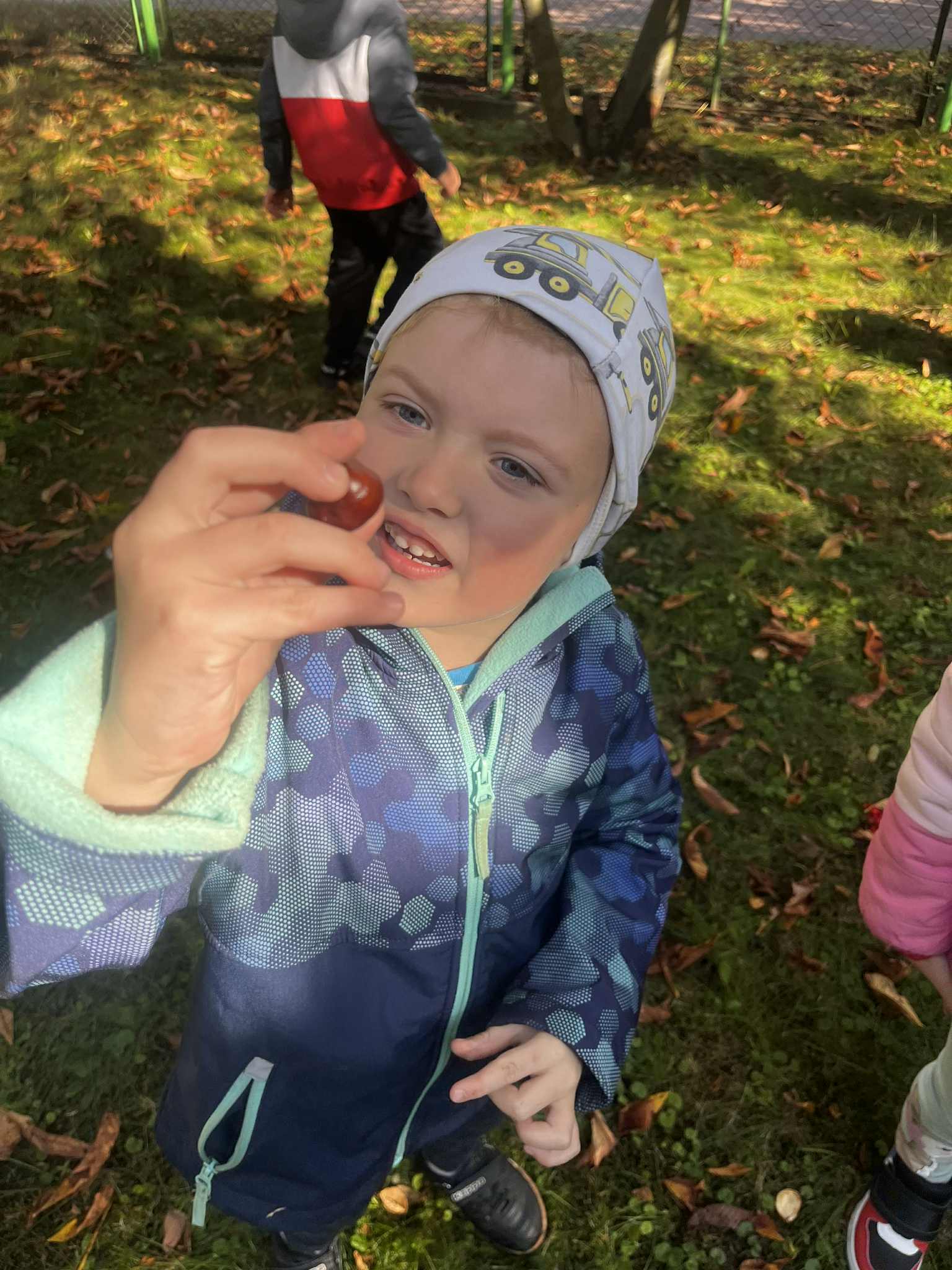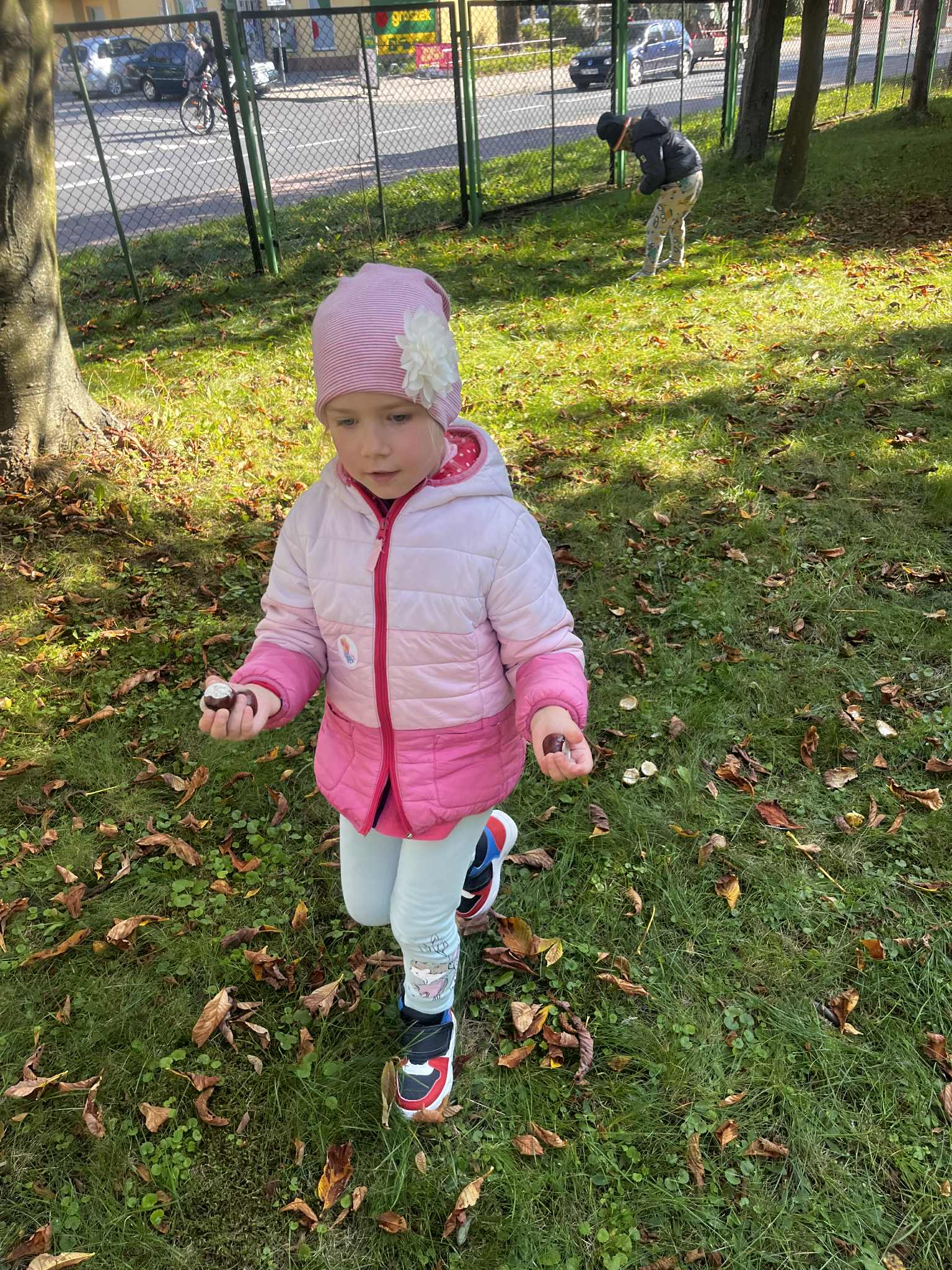 Dzień kasztana Skrzaty korzystając z pięknej pogody wybrały się do przedszkolnego ogrodu na kasztanobranie.