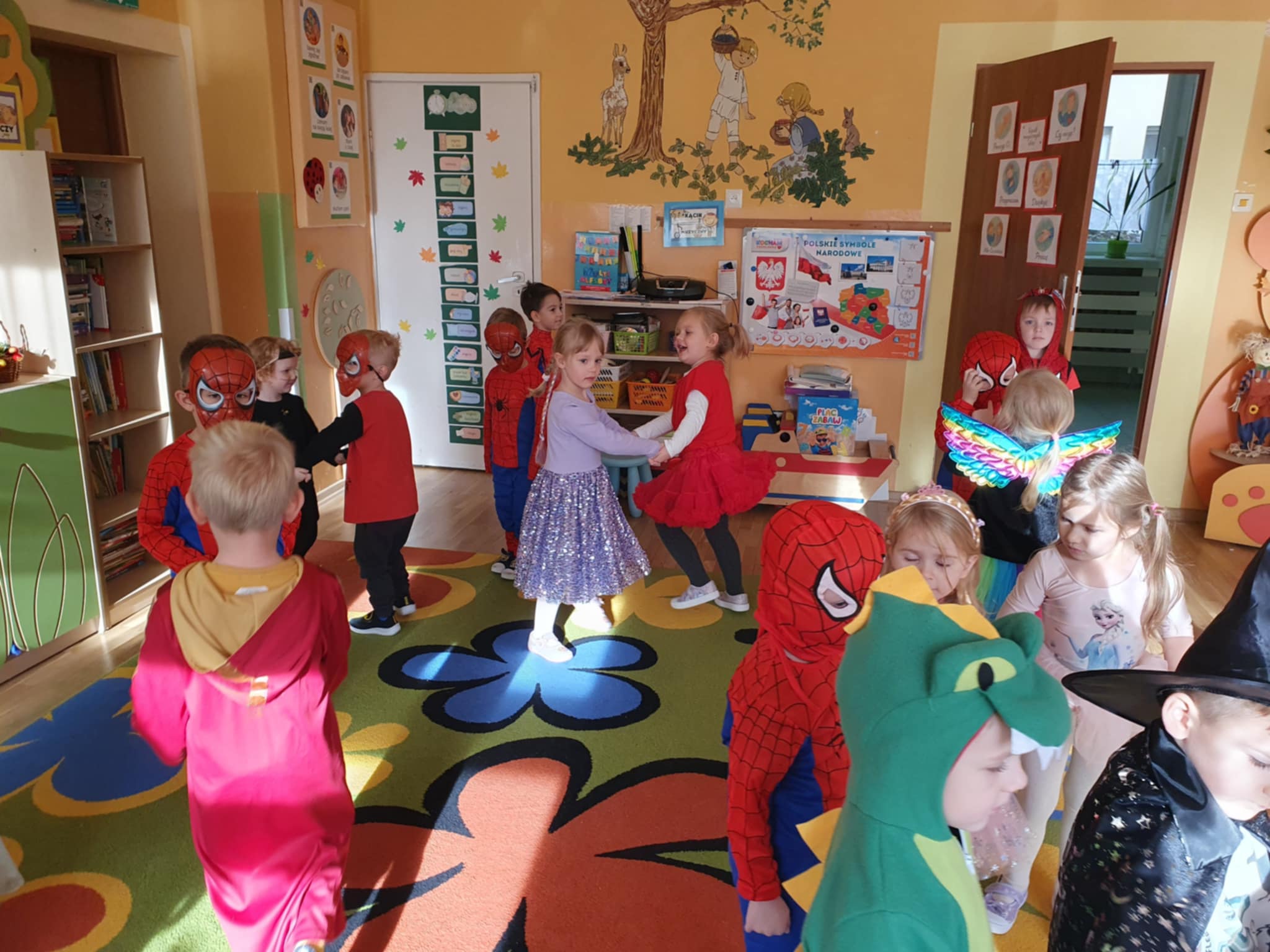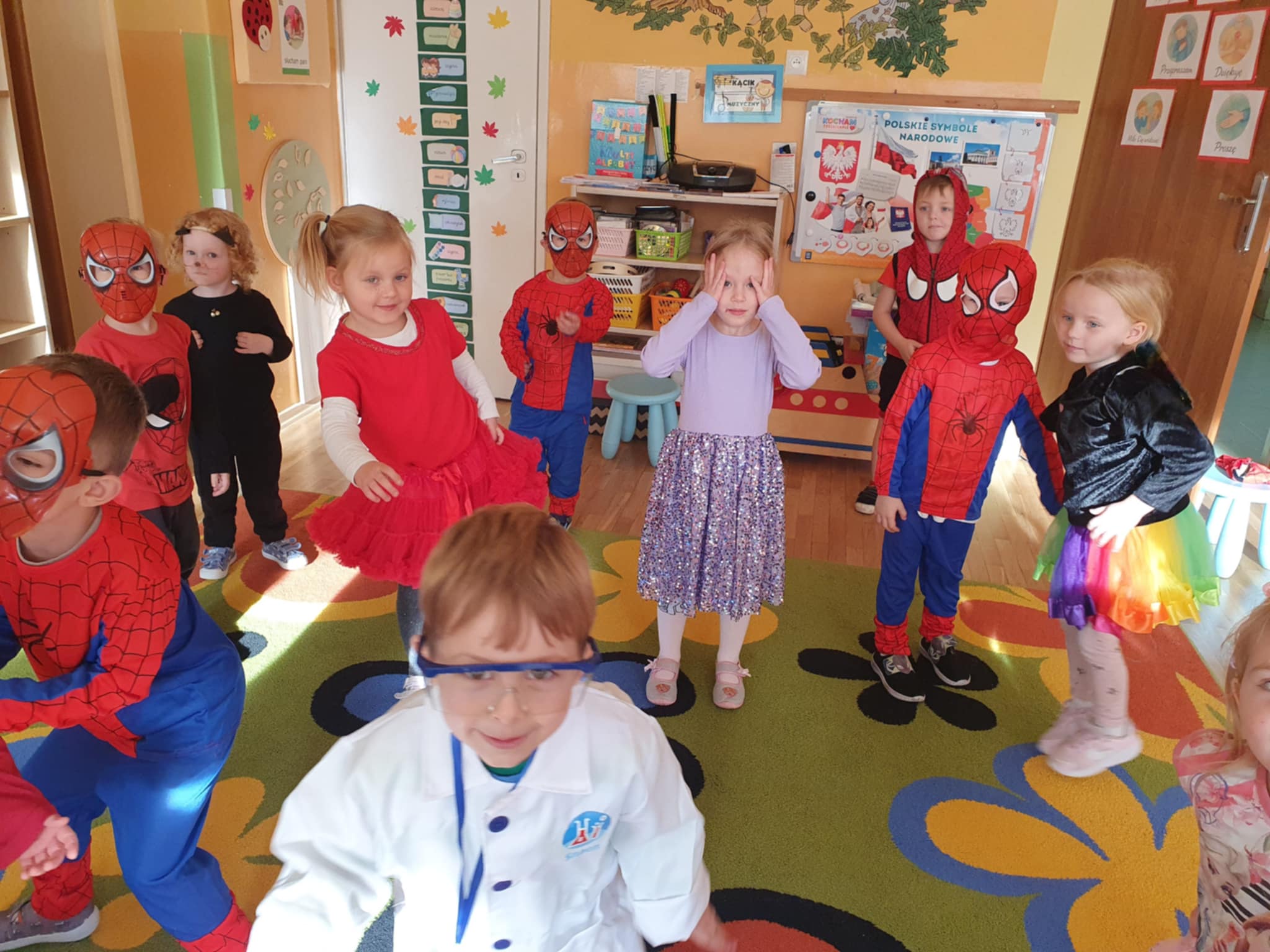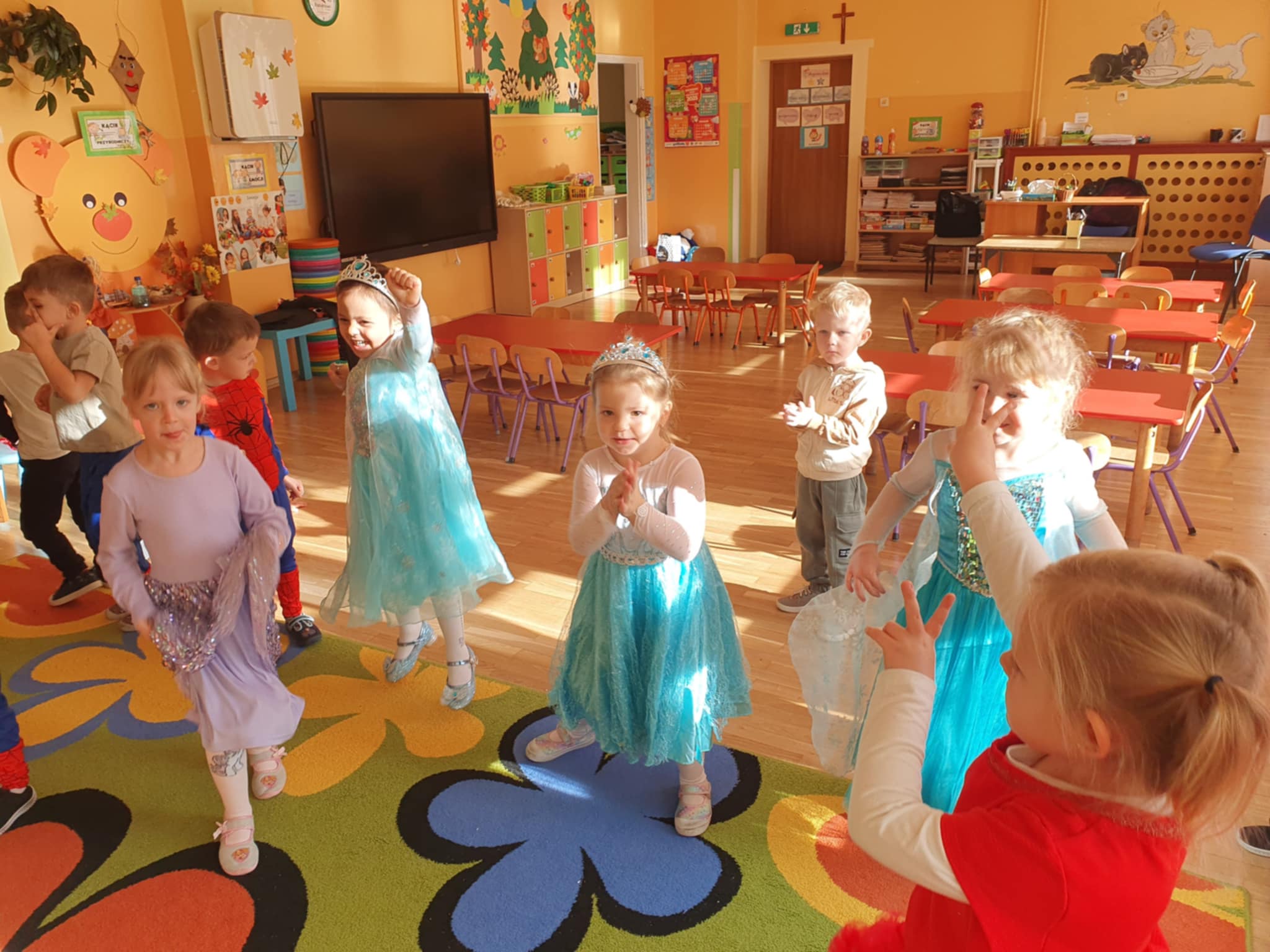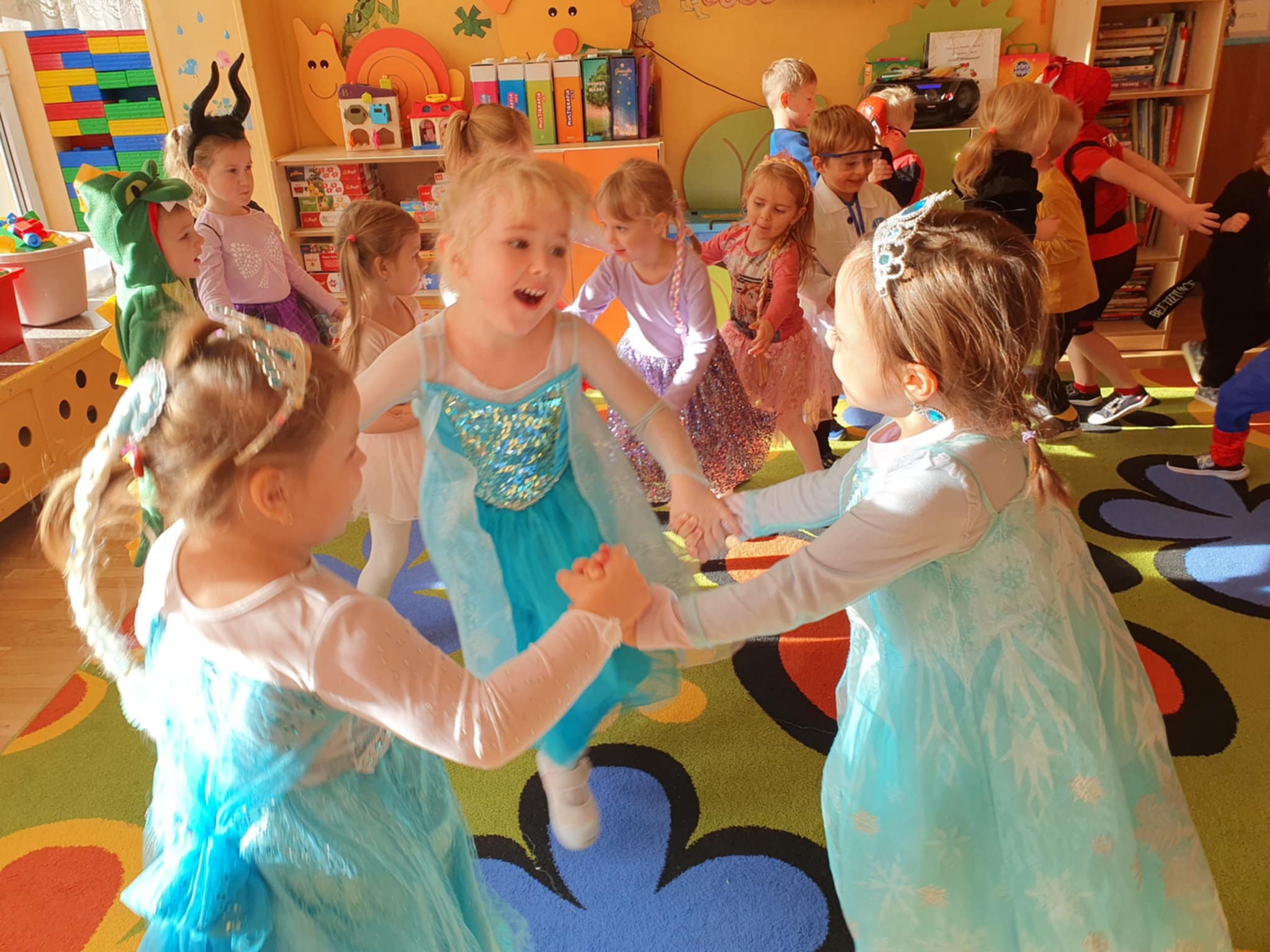 W naszym przedszkolu odbył się Dzień Postaci z Bajek – jedno z najbardziej lubianych wydarzeń przez dzieci. Tego dnia przedszkolaki przyszły przebrane za swoich ulubionych bohaterów z bajek i baśni. W salach zaroiło się od księżniczek, wróżek, superbohaterów, zwierzątek i wielu innych barwnych postaci. Dzieci brały udział w wesołych zabawach, quizach i konkursach związanych z bajkami. Wspólnie przypominaliśmy sobie znane historie, uczyliśmy się, że dobro zawsze zwycięża, a przyjaźń i pomoc innym są najważniejsze.