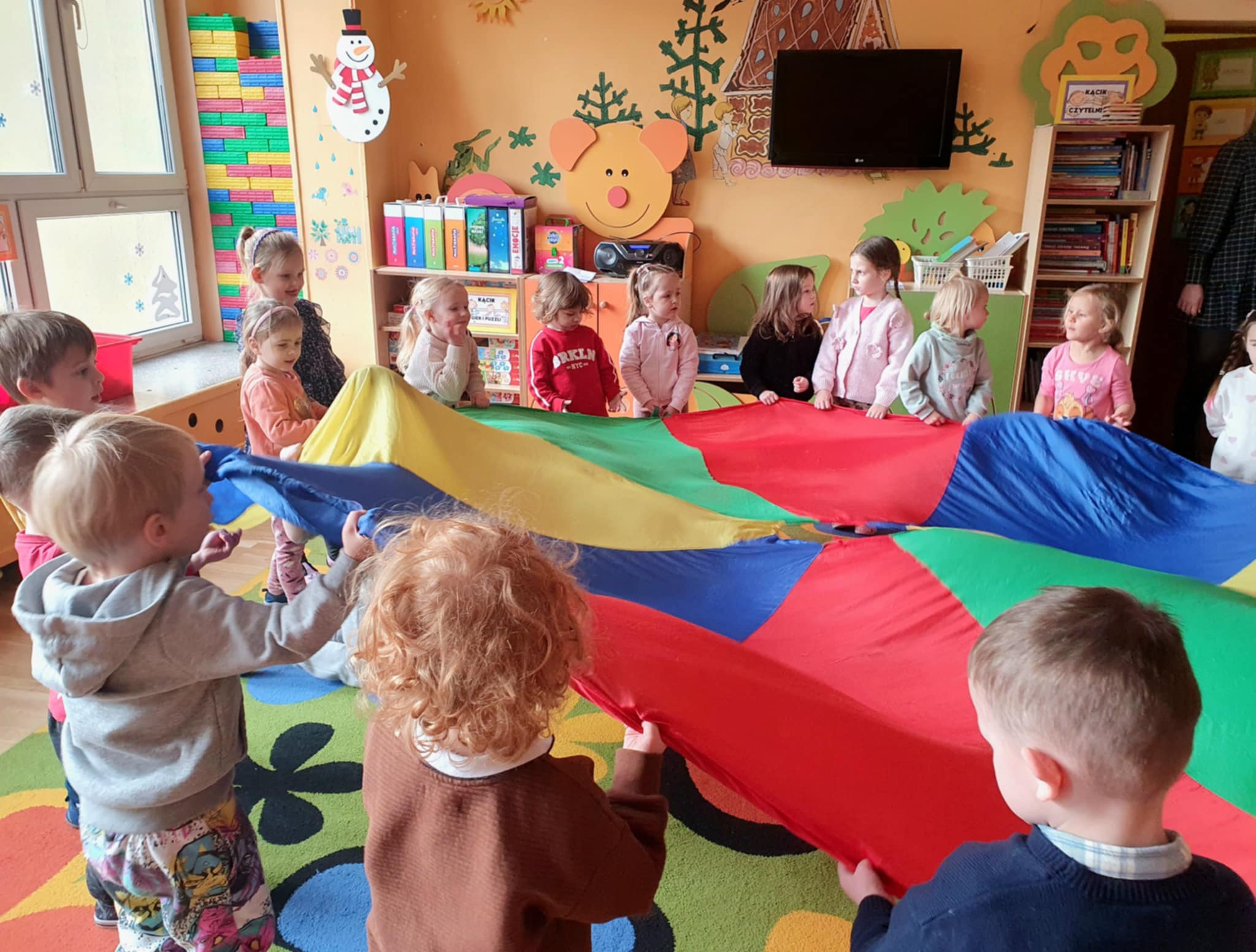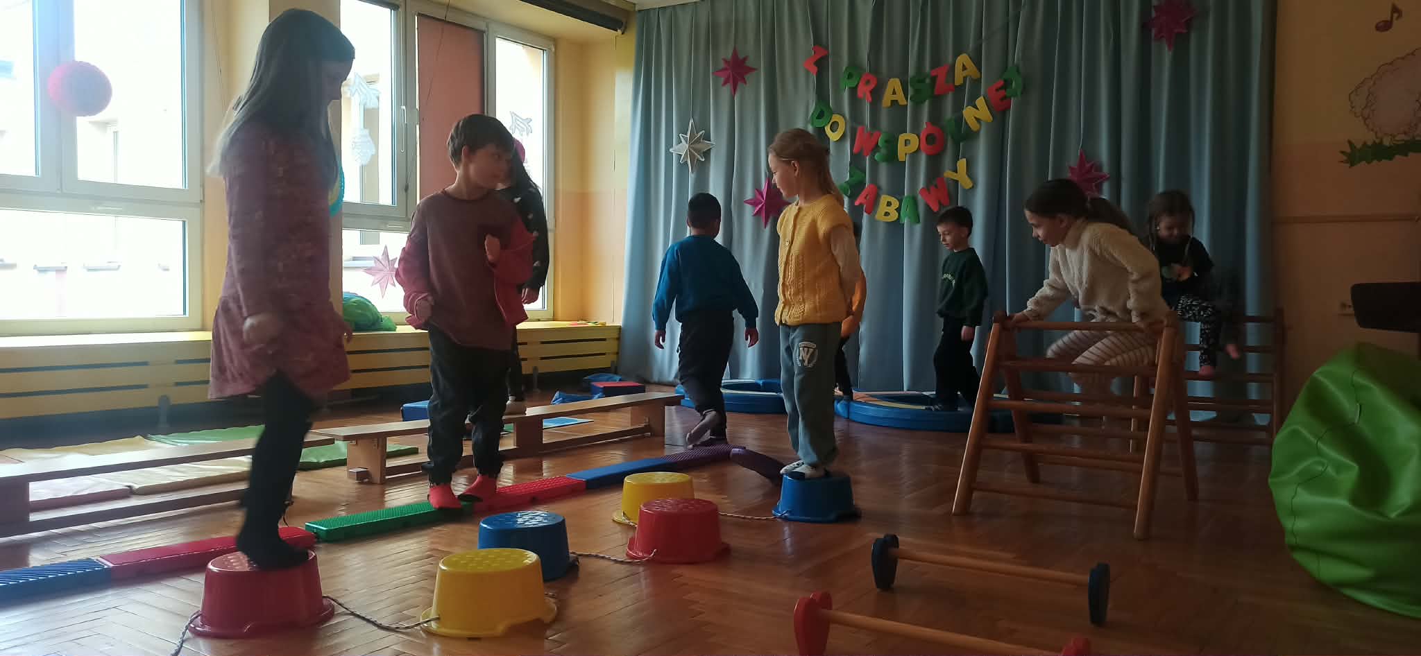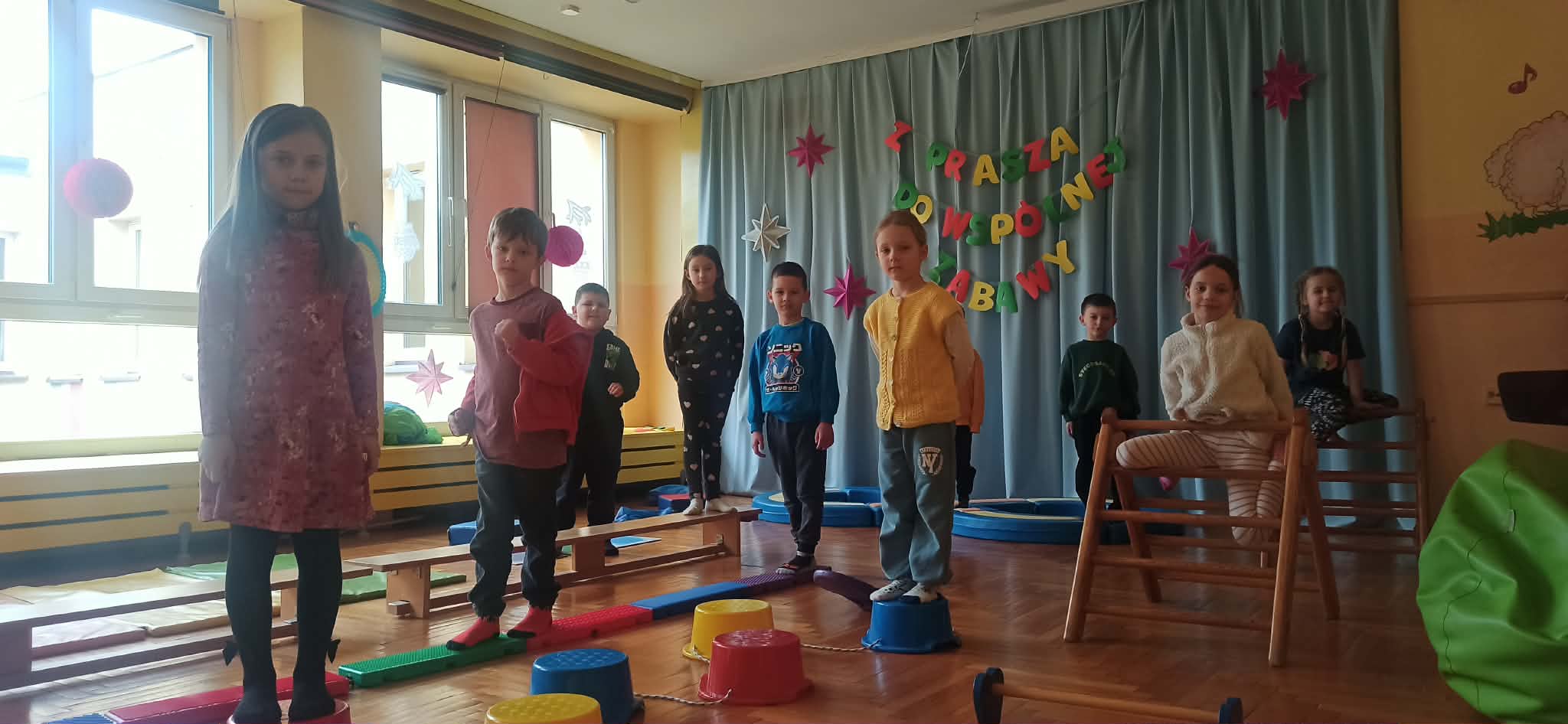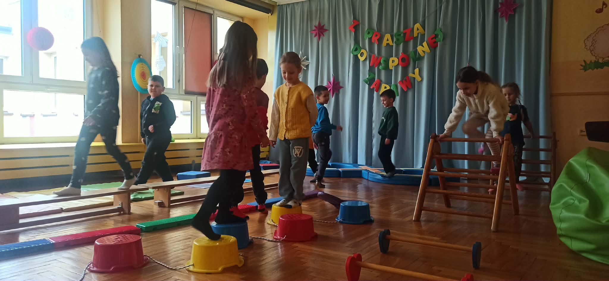 Pierwszy tydzień ferii w naszym przedszkolu upłynął w radosnej atmosferze wspólnej zabawy. Dzieci chętnie uczestniczyły w różnorodnych zajęciach gimnastycznych, które sprzyjały rozwijaniu sprawności ruchowej, koordynacji oraz zdrowych nawyków aktywnego spędzania czasu. Nie zabrakło również zabaw integracyjnych, dzięki którym przedszkolaki miały okazję lepiej się poznać, współpracować w grupie oraz wzmacniać relacje z rówieśnikami. Wspólne aktywności dostarczyły dzieciom wielu pozytywnych emocji, uśmiechu i niezapomnianych wrażeń. Przed nami kolejny tydzień ferii, który zapowiada się równie ciekawie i aktywnie.