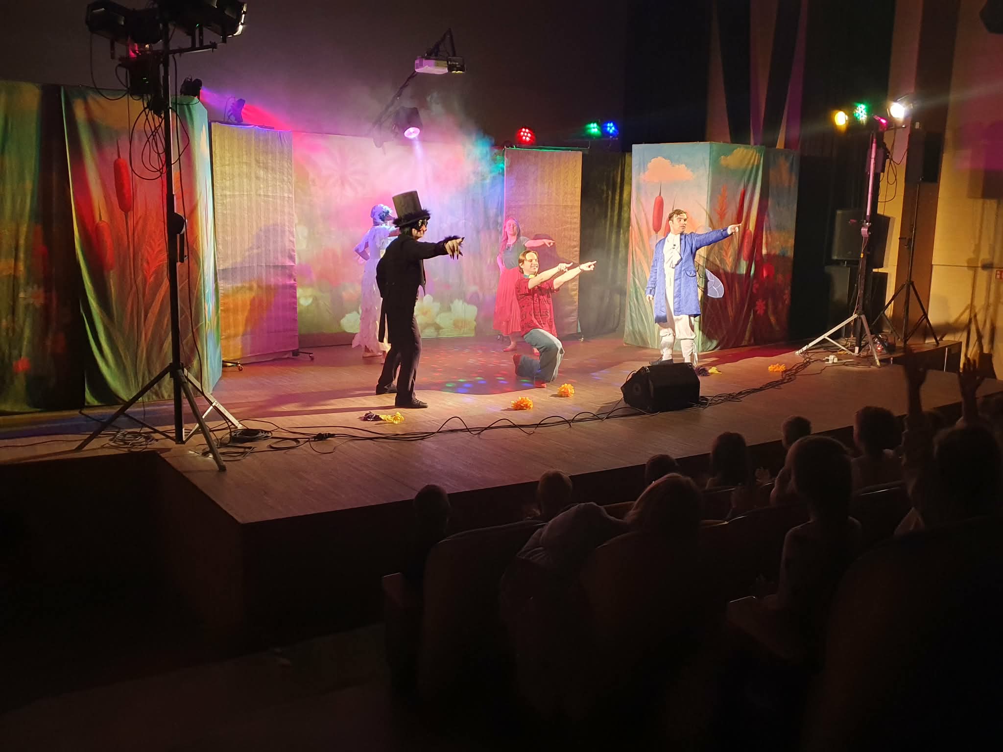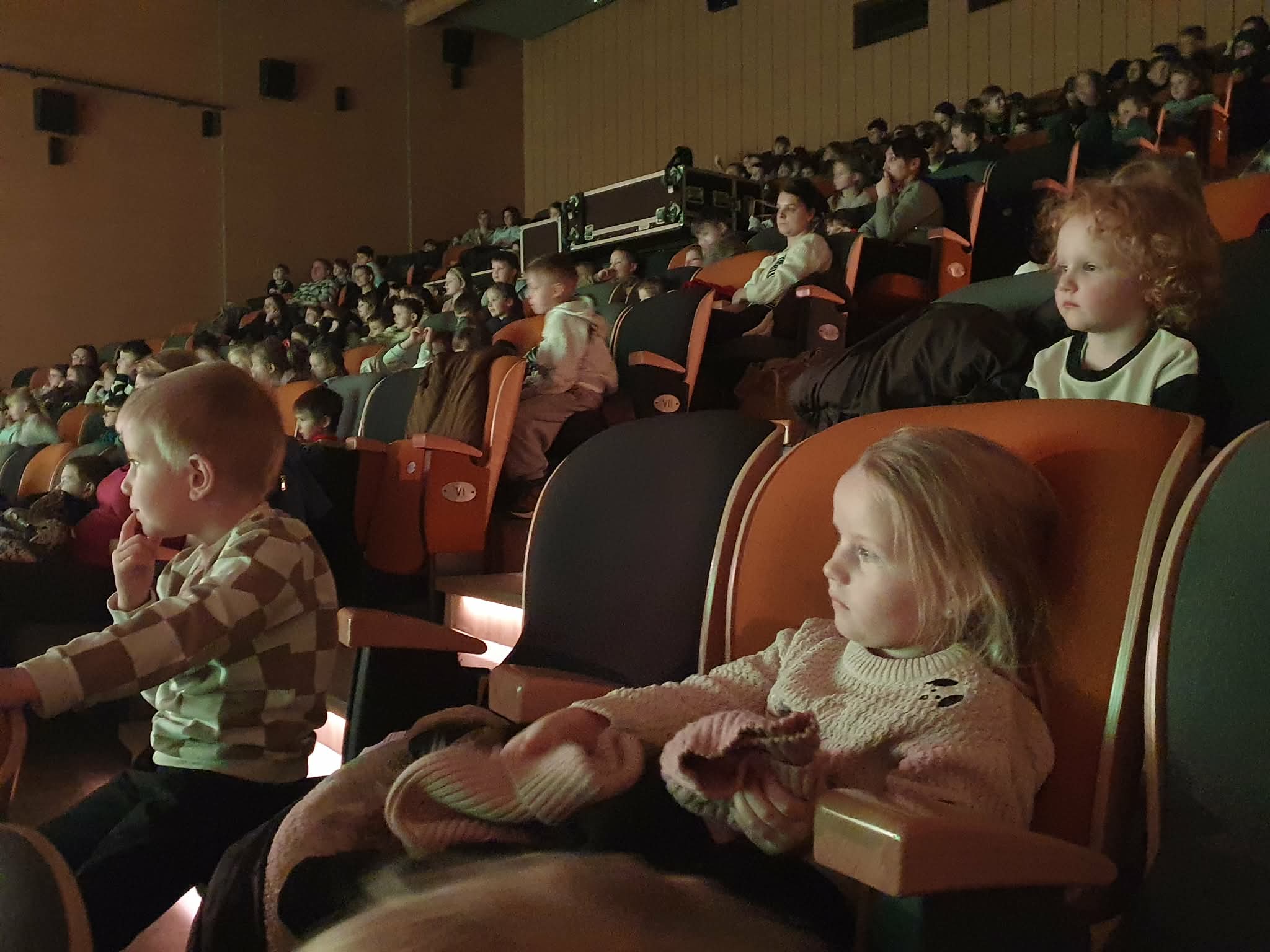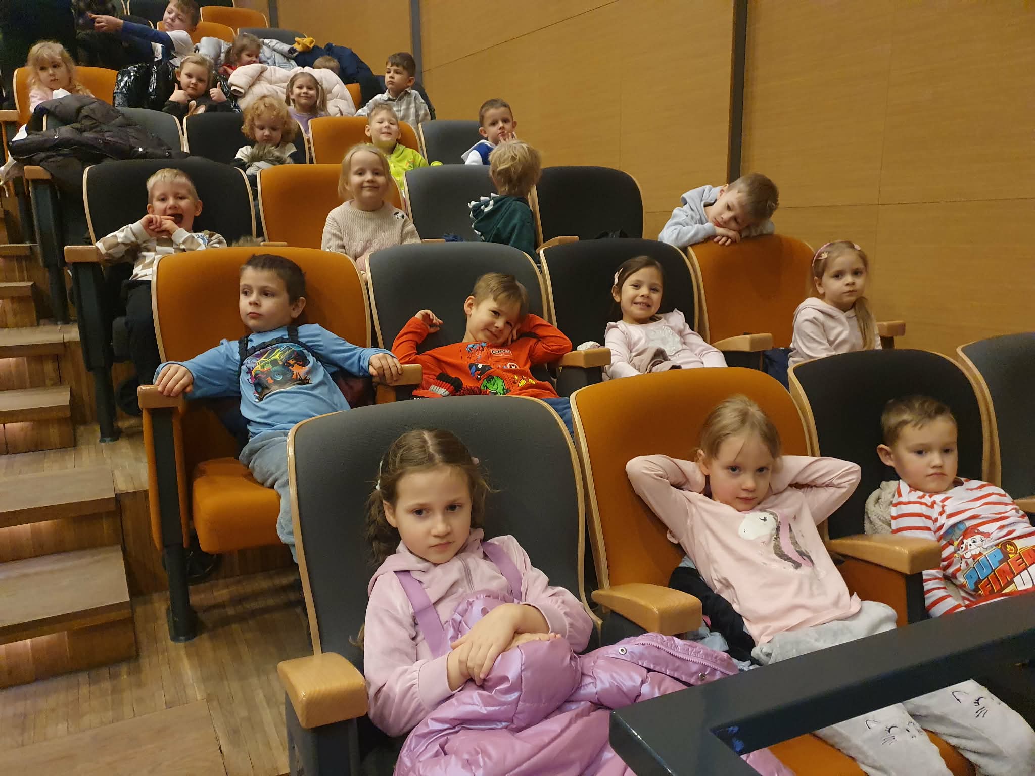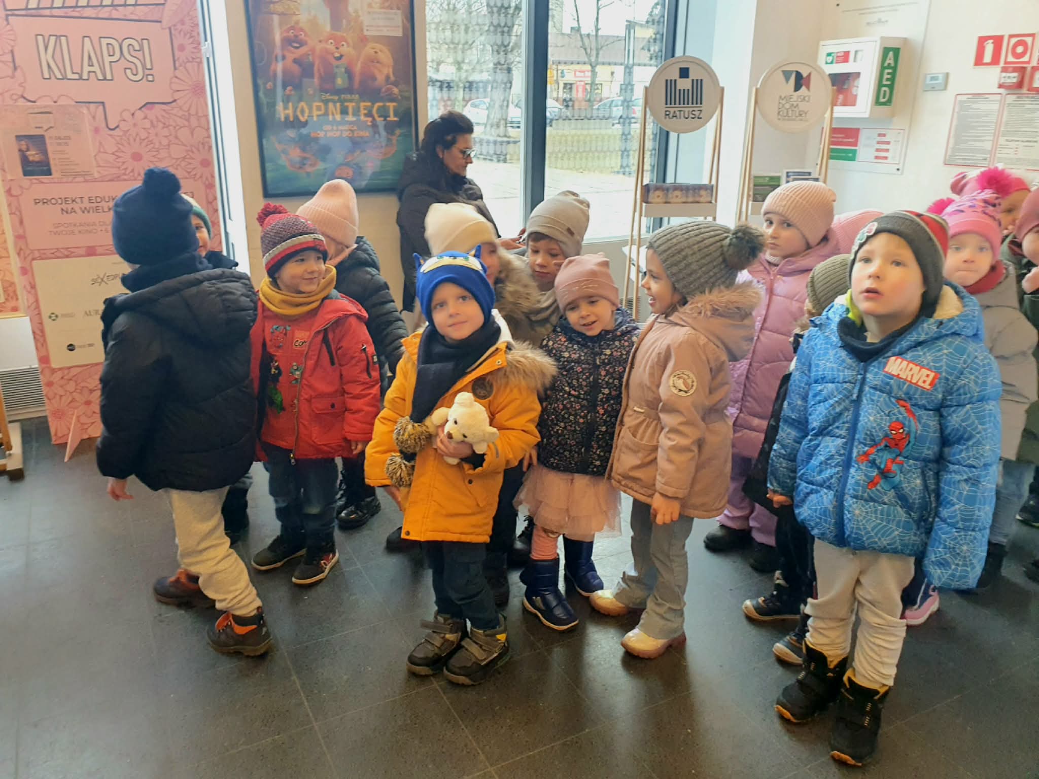 Dzieci uczestniczyły w wyjściu do Centrum Integracji „Ratusz”, gdzie obejrzały spektakl teatralny pt. „Magiczny Świat Pana Andersena”. Podczas przedstawienia dzieci przeniosły się do niezwykłego świata znanych i lubianych baśni. Na scenie pojawiły się historie takie jak Brzydkie kaczątko, Nowe szaty cesarza oraz Calineczka. Mali widzowie z zainteresowaniem śledzili losy bohaterów, poznając ważne wartości, takie jak akceptacja, prawda oraz dobroć. Spektakl zachwycił dzieci barwną scenografią, muzyką oraz ciekawą grą aktorów, którzy w przystępny i pełen humoru sposób przedstawili znane opowieści. Przedszkolaki żywo reagowały na wydarzenia na scenie, nagradzając aktorów gromkimi brawami. Wyjście do teatru było dla dzieci wspaniałą okazją do obcowania z kulturą oraz rozwijania zainteresowań teatralnych.