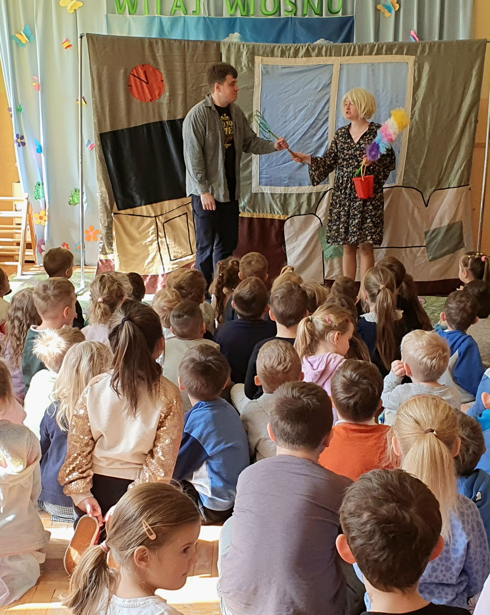 Ostatnie dni upłynęły w radosnej i pełnej aktywności atmosferze. Dzieci miały okazję uczestniczyć w ciekawym teatrzyku, który dostarczył im wielu pozytywnych emocji. Z dużym zainteresowaniem oglądały spektakl, śledziły losy bohaterów oraz żywo reagowały na wydarzenia rozgrywające się na scenie. Wraz z nadejściem wiosny przedszkolaki zaangażowały się również w wiosenne i świąteczne porządki. Dzieci chętnie pomagały w porządkowaniu sali, dbając o swoje otoczenie i ucząc się odpowiedzialności za wspólną przestrzeń.