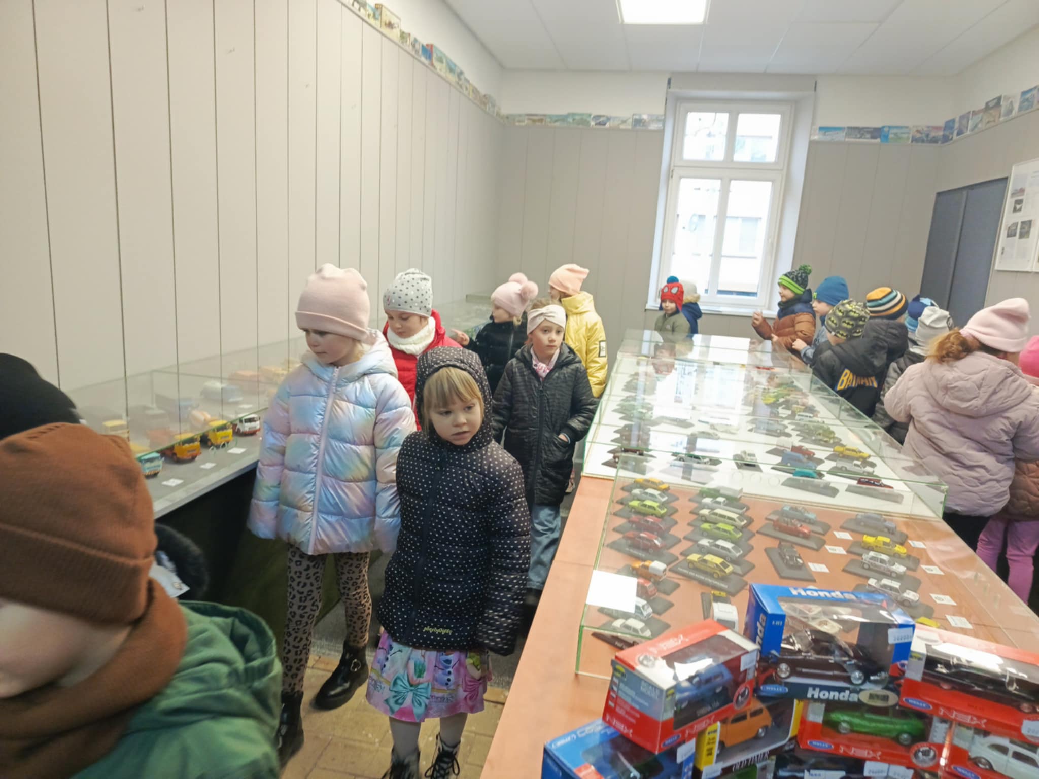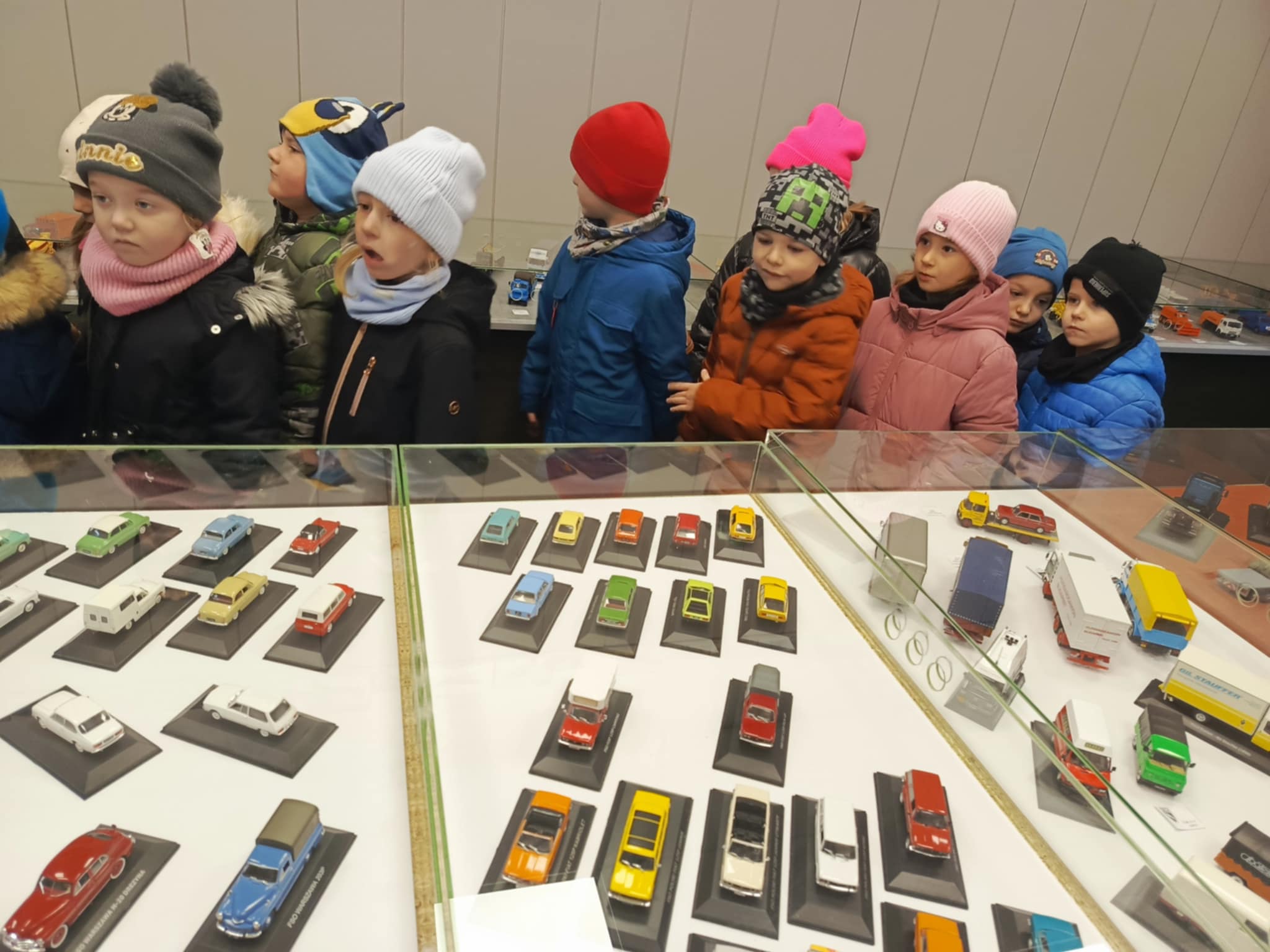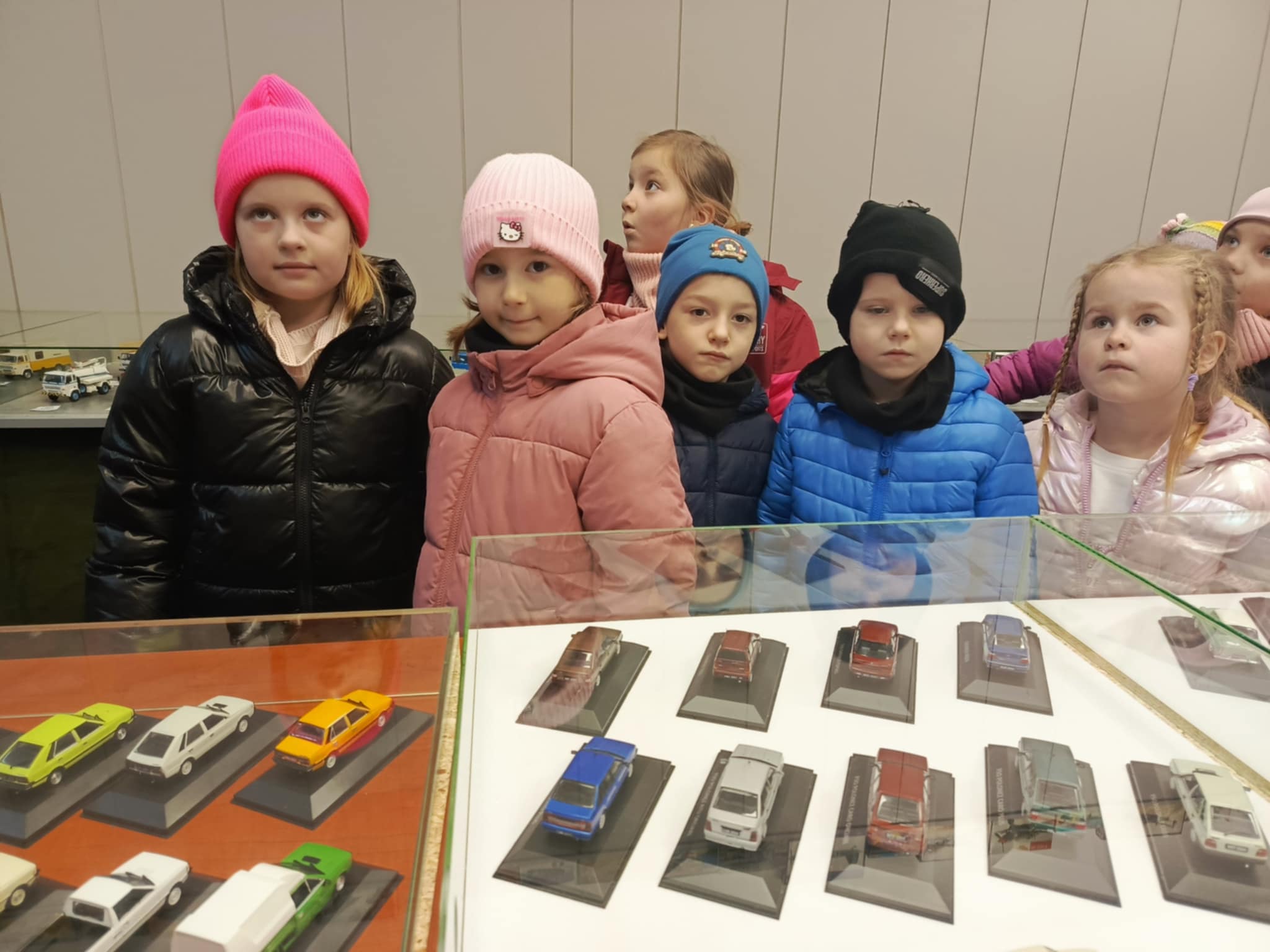 Przedszkolaki wybrały się na autorską wystawę modeli pojazdów z minionych epok. Dzieci miały okazję zobaczyć imponującą kolekcję modeli, głównie z okresu PRL-u, ale również z innych lat. Wśród eksponatów znalazł się szeroki wachlarz pojazdów w skali 1:43 – od modeli służb takich jak straż pożarna, policja czy pogotowie ratunkowe, aż po zwykłe pojazdy cywilne: taksówki, ciężarówki, auta osobowe. Dodatkową atrakcją był również model kolejki i pociągów, które wzbudziły ogromne zainteresowanie dzieci. Z zaciekawieniem obserwowały detale wagonów i lokomotyw, poznając, jak wyglądała dawna kolej. Na wystawę zaprosił nas tata Nikodema, któremu serdecznie dziękujemy za zaangażowanie i możliwość przeniesienia naszych przedszkolaków w fascynującą podróż do przeszłości. To była wyjątkowa lekcja historii połączona z odkrywaniem świata techniki.