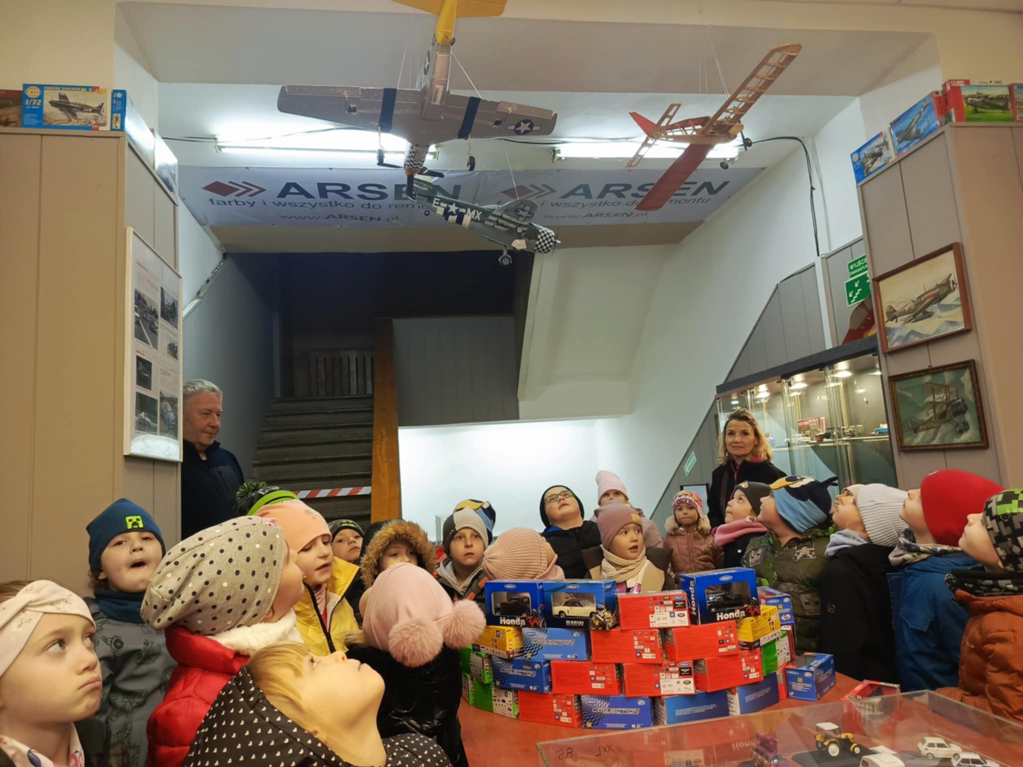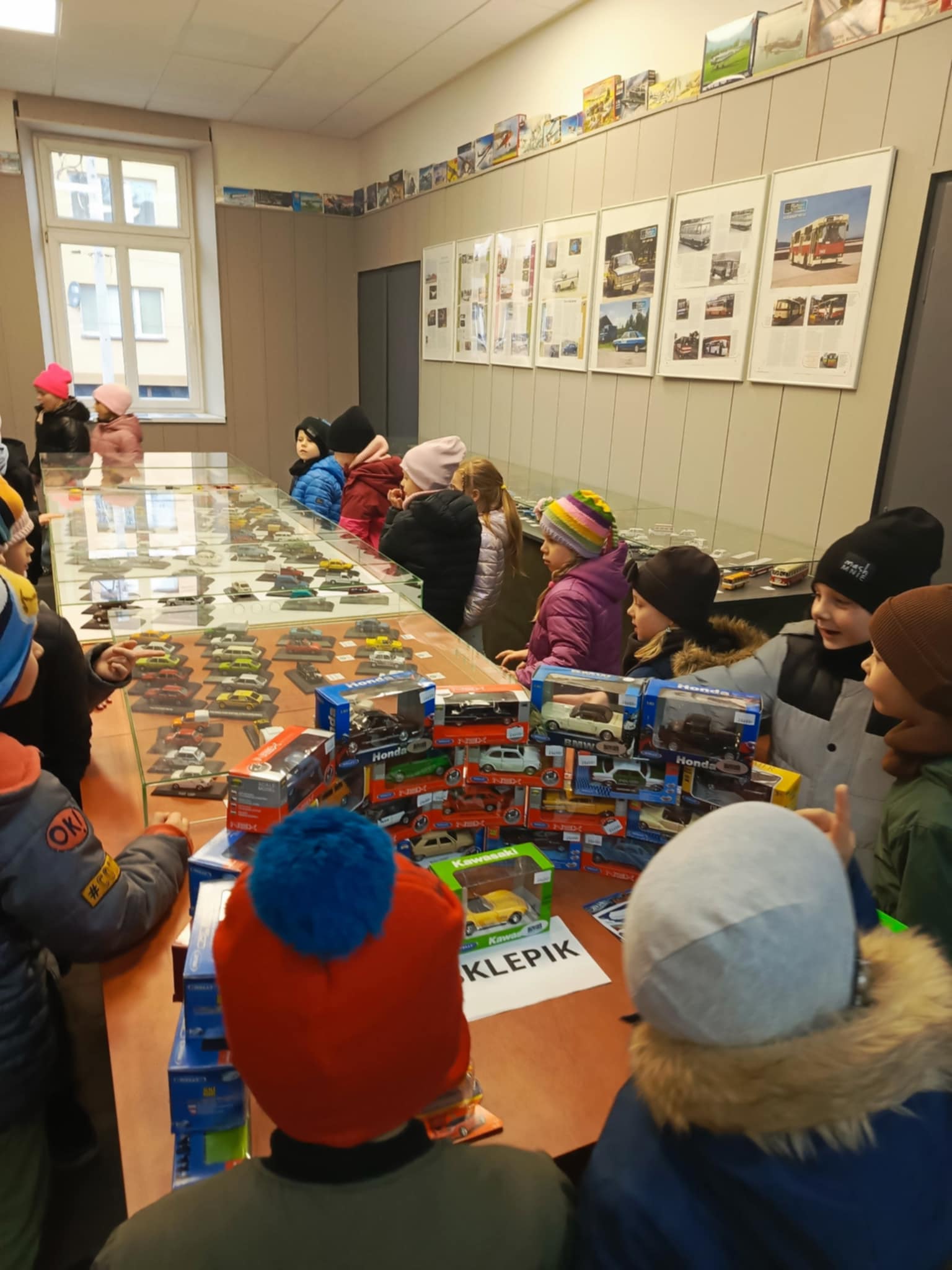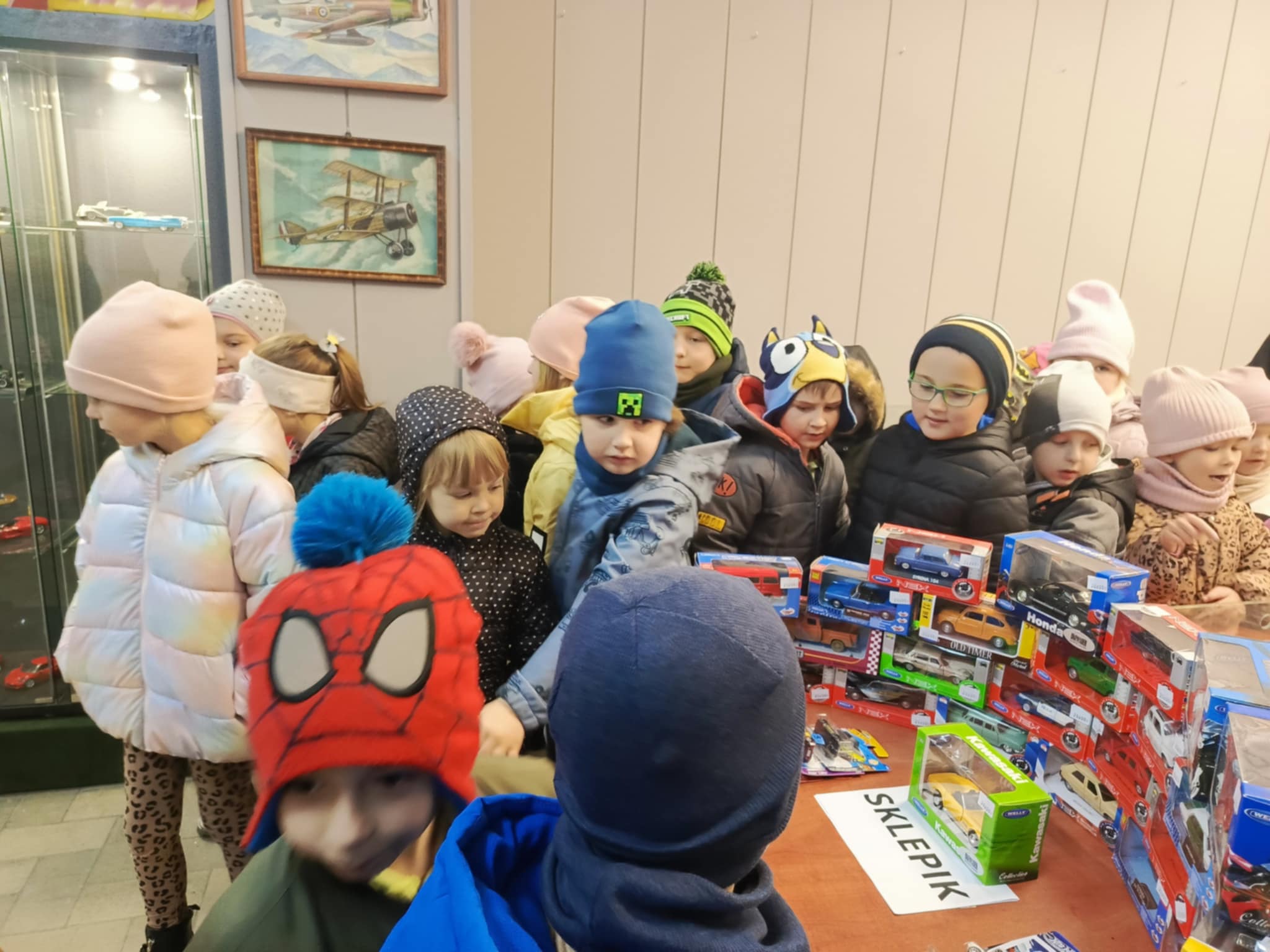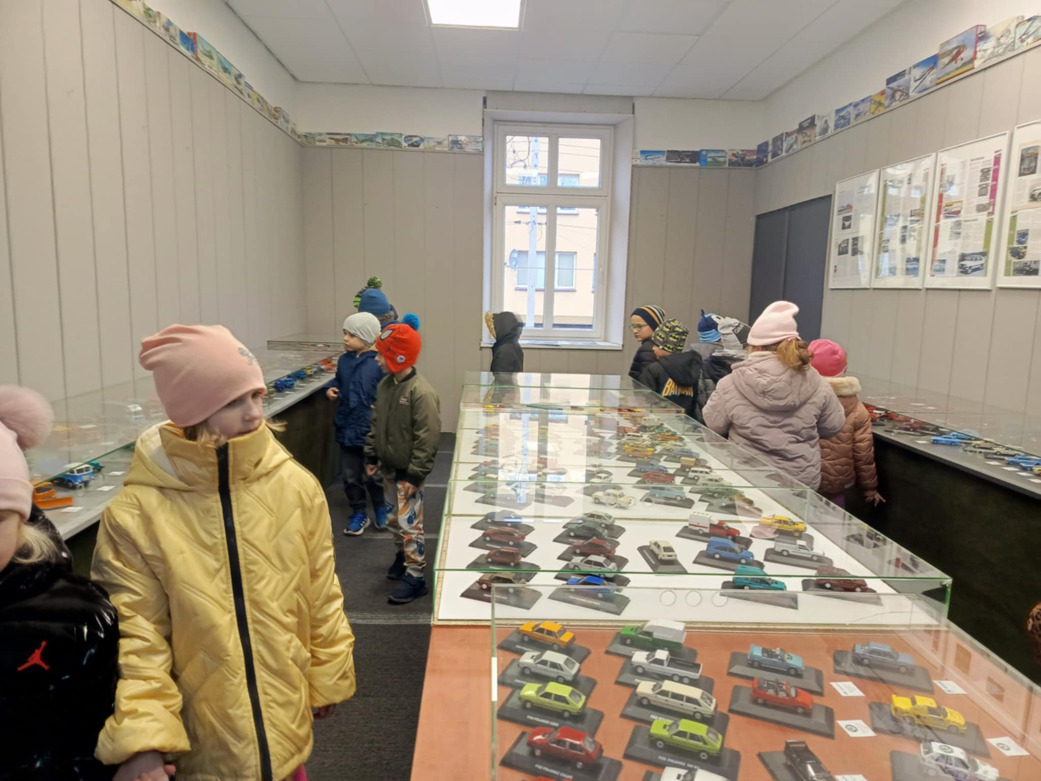 Przedszkolaki wybrały się na autorską wystawę modeli pojazdów z minionych epok. Dzieci miały okazję zobaczyć imponującą kolekcję modeli, głównie z okresu PRL-u, ale również z innych lat. Wśród eksponatów znalazł się szeroki wachlarz pojazdów w skali 1:43 – od modeli służb takich jak straż pożarna, policja czy pogotowie ratunkowe, aż po zwykłe pojazdy cywilne: taksówki, ciężarówki, auta osobowe. Dodatkową atrakcją był również model kolejki i pociągów, które wzbudziły ogromne zainteresowanie dzieci. Z zaciekawieniem obserwowały detale wagonów i lokomotyw, poznając, jak wyglądała dawna kolej. Na wystawę zaprosił nas tata Nikodema, któremu serdecznie dziękujemy za zaangażowanie i możliwość przeniesienia naszych przedszkolaków w fascynującą podróż do przeszłości. To była wyjątkowa lekcja historii połączona z odkrywaniem świata techniki.