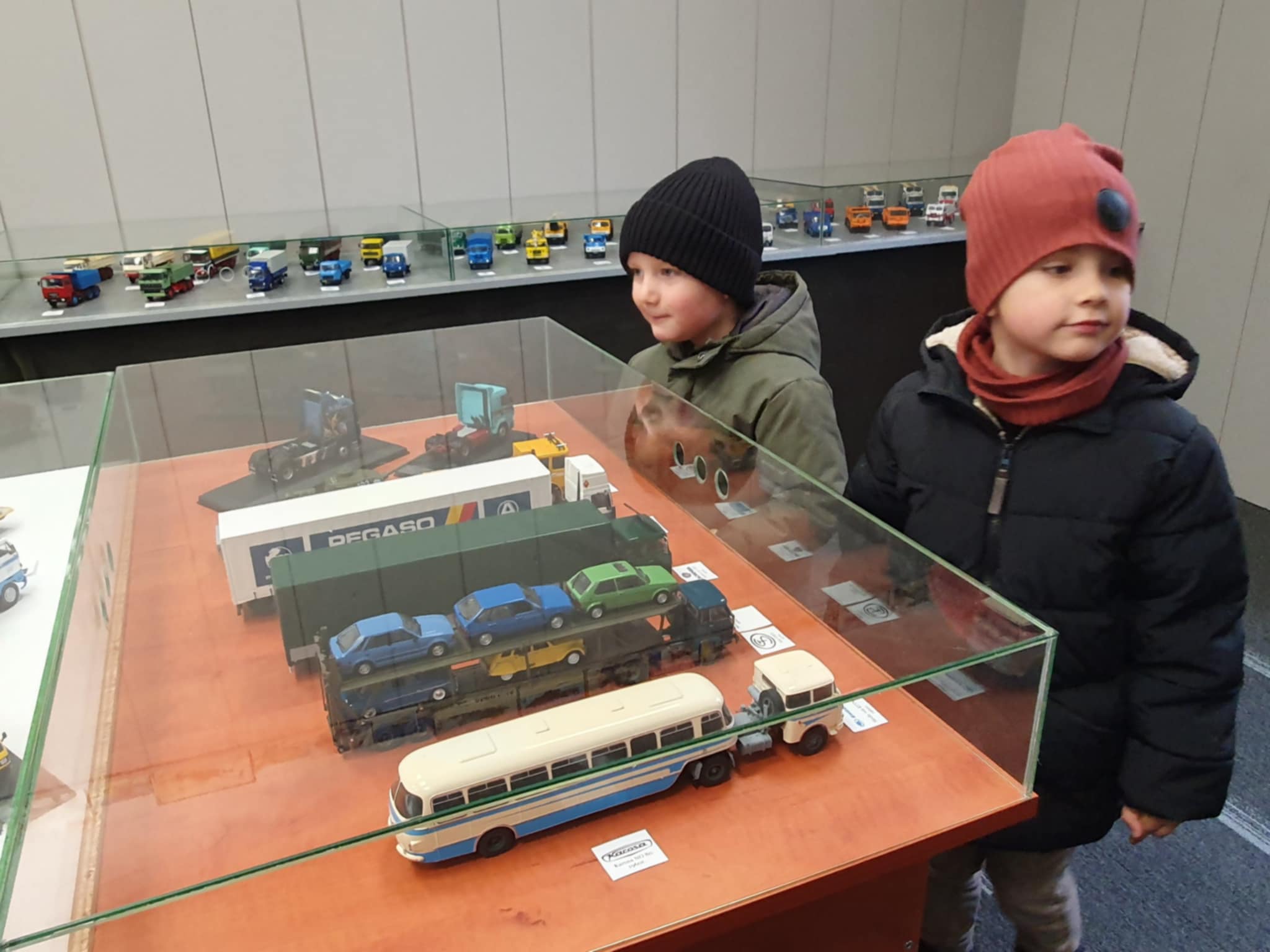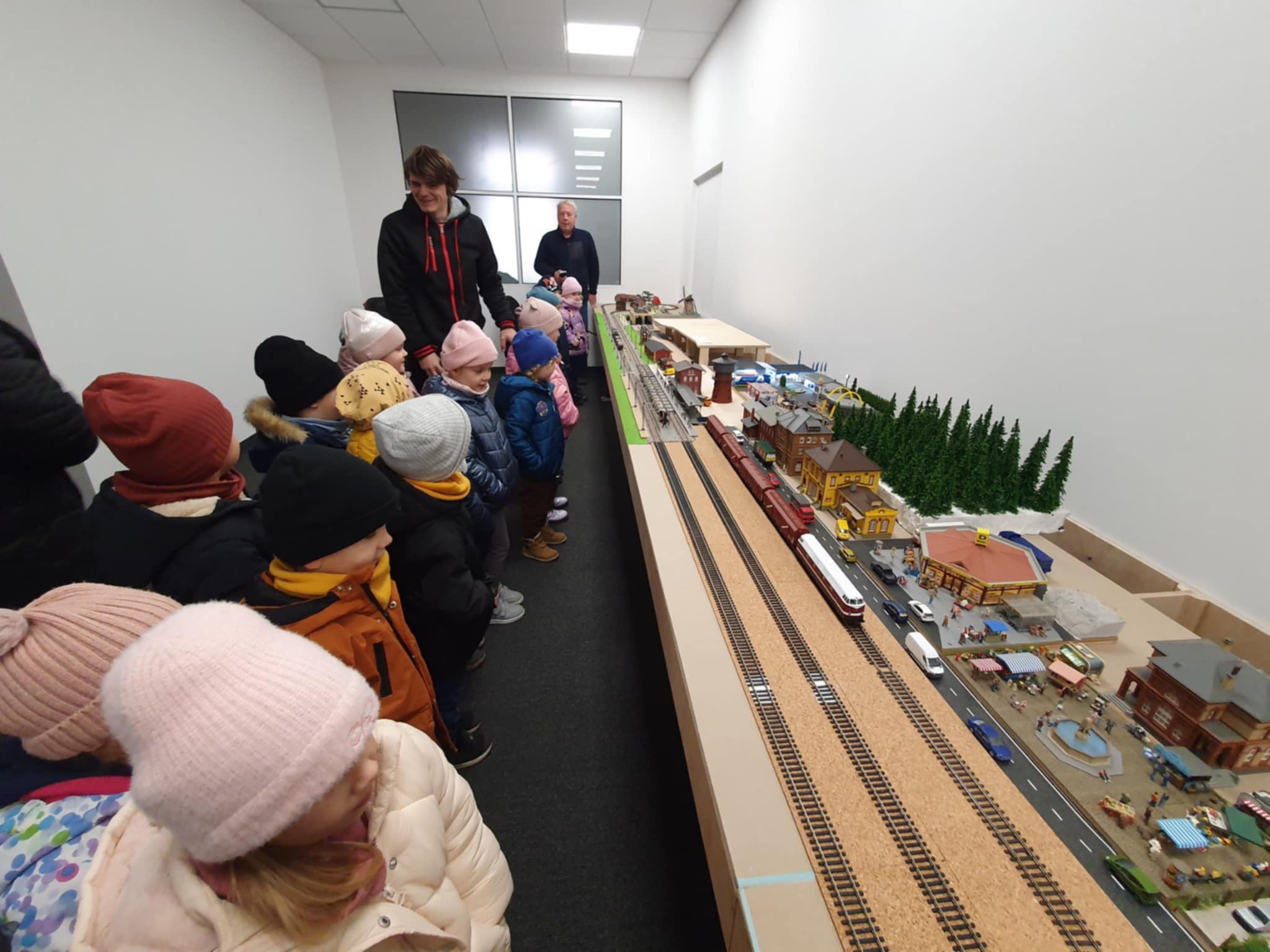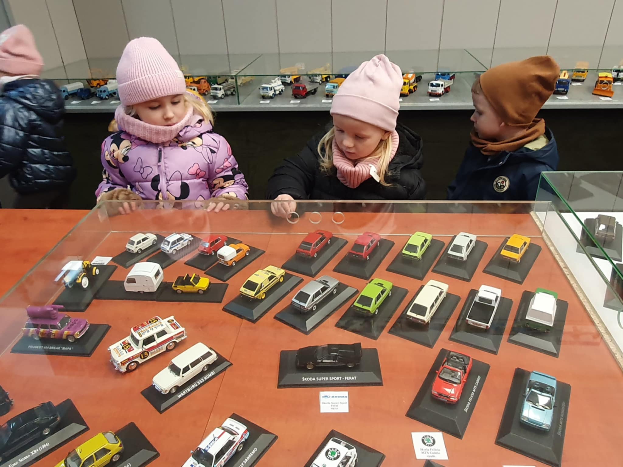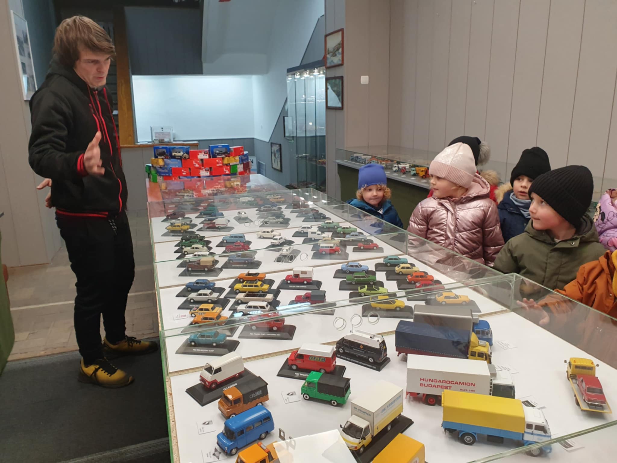 Nasza grupa wybrała się na autorską wystawa modeli pojazdów z minionych epok. Dzieci miały okazję zobaczyć imponującą kolekcję modeli, głównie z okresu PRL-u, ale również z innych lat. Wśród eksponatów znalazł się szeroki wachlarz pojazdów w skali 1:43 – od modeli służb takich jak straż pożarna, policja czy pogotowie ratunkowe, aż po zwykłe pojazdy cywilne: taksówki, ciężarówki, auta osobowe. Dzieci z ciekawością oglądały każdy model, porównywały kolory, kształty, a także poznawały ich zastosowanie w dawnych czasach. Dodatkową atrakcją był również model kolejki i pociągów, które wzbudziły ogromne zainteresowanie dzieci. Z zaciekawieniem obserwowały detale wagonów i lokomotyw, poznając, jak wyglądała dawna kolej. Na wystawę zaprosił nas tata Nikodema, któremu serdecznie dziękujemy za zaangażowanie i możliwość przeniesienia naszych przedszkolaków w fascynującą podróż do przeszłości. To była wyjątkowa lekcja historii połączona z odkrywaniem świata techniki.